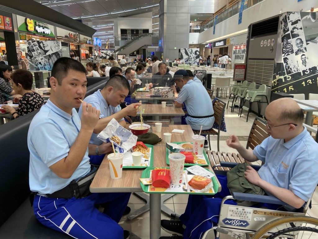 CDやDVD、Tシャツや靴、コーヒーやクッキーなど、それぞれが欲しいものが買えて満足な様子でした。お昼はフードコートでみんなで一緒に食事をしました。食後は、5階の展望デッキで飛行機を見て楽しみました。