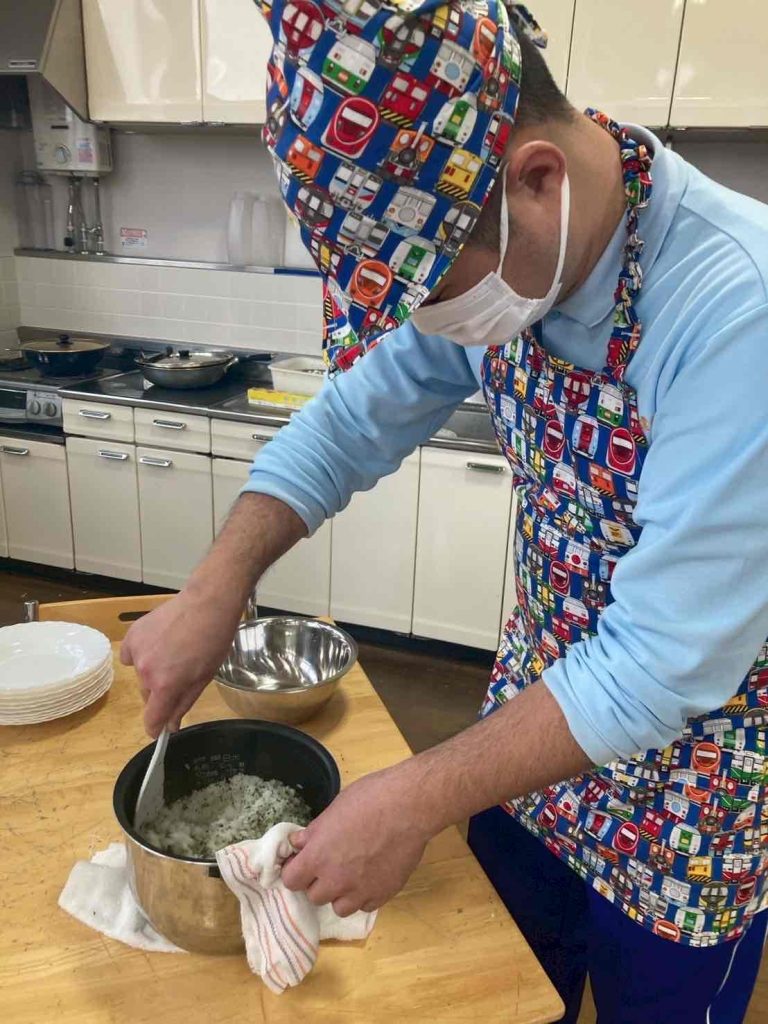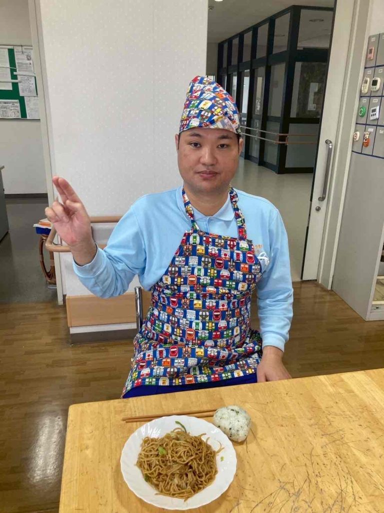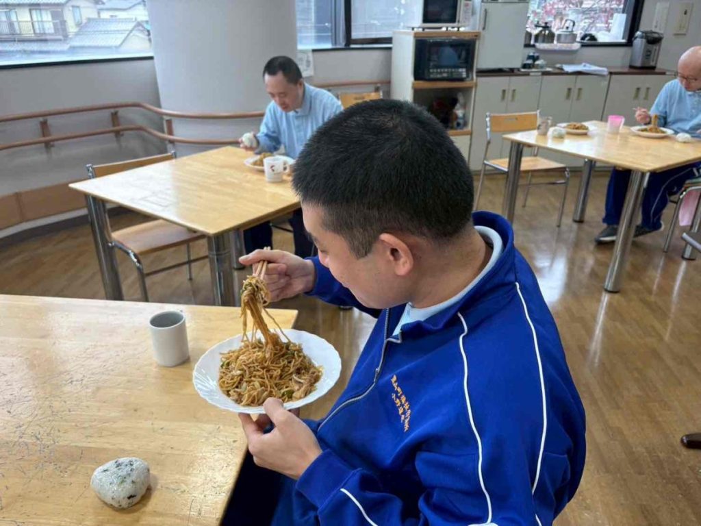 11月12日に調理実習を行いました。今回は1人の利用者が焼きそばとおにぎりを作ることに挑戦しました。