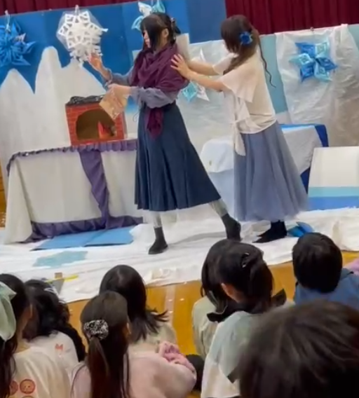 12月25日(木)午後2時より、しいの木児童センター遊戯室にて、社会福祉協議会職員「こリスっこ劇団」で「アナと雪の女王」を行いました。劇中戦いの場面では、「負けないで!」「頑張って!」と多くの声援をいただきました。歌う場面では、子ども達が手拍子をしながら一緒に歌を歌い、大変盛り上がりました。これからもこリスっこ劇団は、皆様の笑顔のために頑張ります。次回もお楽しみに!